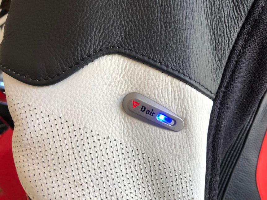 **Сейчас в линейке продукции Dainese есть два комбинезона с технологией D-air: известный по MotoGP Mugello R D-Air, состоящий из кожи кенгуру и титановых защитных вставок, и Misano 2 D-air - из более доступной коровьей кожи D-skin, усиленной алюминиевыми вставками. **(Важно отметить что кроме комбинезона, в линейке экипировки Dainese, есть мотокуртка с аналогичным названием "Мотокуртка Misano D-air" - подробнее о ней мы писали ранее, которая, возможно, так же получит обновление.)