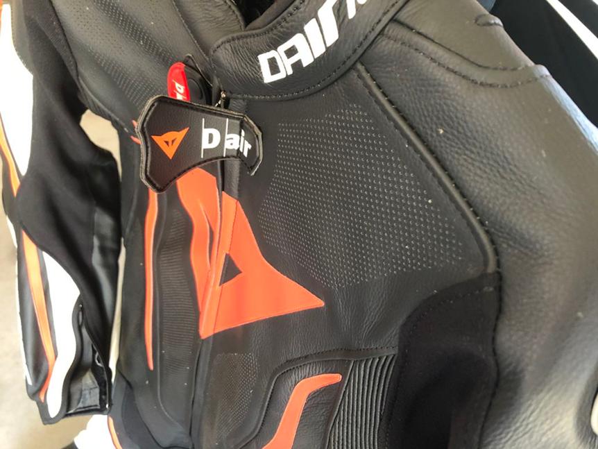 Аирбэг D-air (звучит как dare - дерзновение, вызов, решимость) является несъёмным и так аккуратно встроен в комбинезон, что нисколько не увеличивает его габариты. Для того, чтобы его увидеть, нужно отстегнуть подклад и немного пошариться внутри. Если костюм подобран по размеру, аирбэг совершенно не ощущается при ношении - т.е. посадка у Misano точно такая же, как у обычного комбинезона.