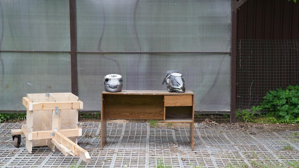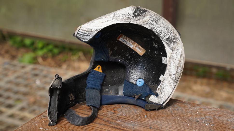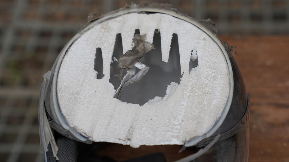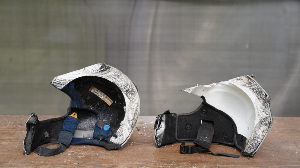 - Тестирование на стирание об асфальт в подготовленной машине под нагрузкой 16кг в равных условиях. Проверялось на какой дистианции протрется скорлупа мотошлема, на какой дистанции протрется пенопластовая вставка.