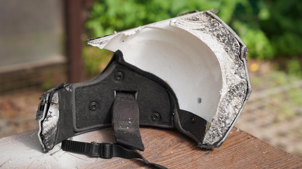 - Продольное распиливание мотошлемов с визуальным осмотром и проверка скорлупы мотошлемов на прочность под давлением.