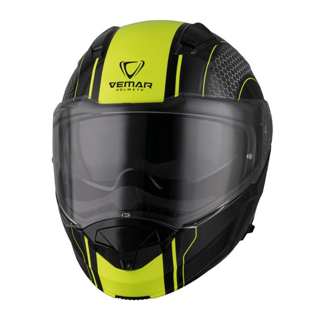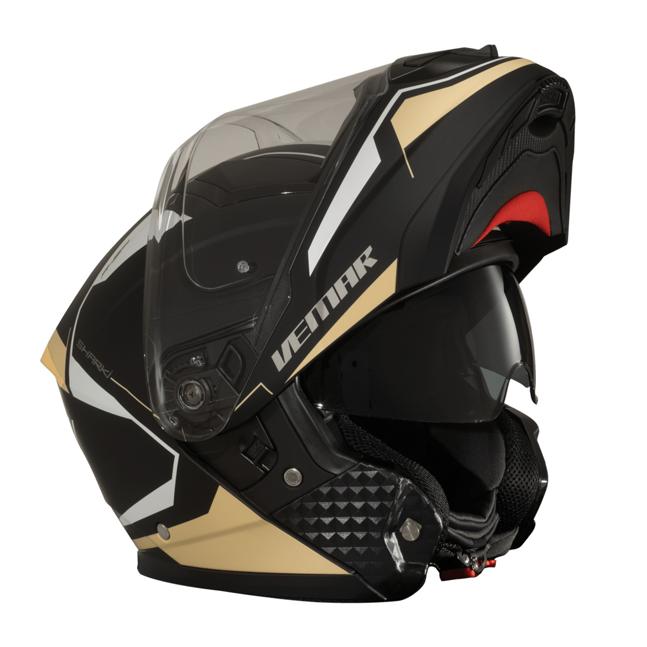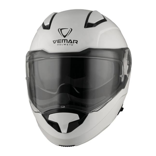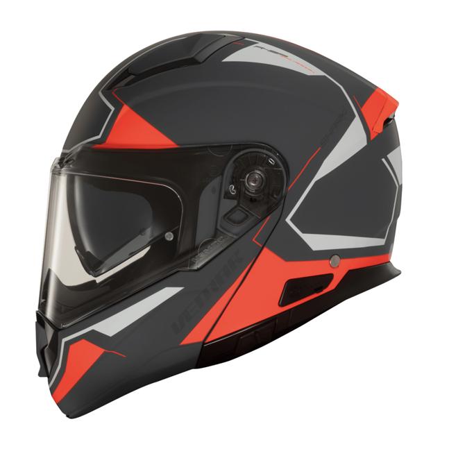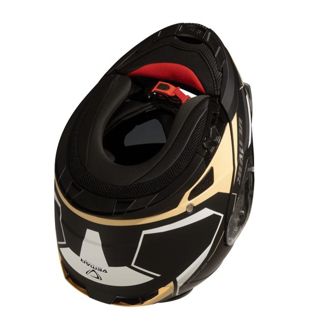 Среди других модуляров Vemar выделяется дизайном, в котором есть что-то фантастическое. У него довольно высокая челюсть, зато ширина обзора весьма хороша. Поэтому вместо того, чтобы на каждой остановке нащупывать кнопку "скорей-открыть-челюсть", иногда попросту забываешь об этой возможности - настолько свободно взгляду, когда этот шлем на голове.