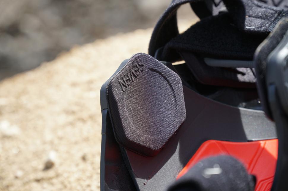 Для того, чтобы подогнать наколенники изнутри, имеются три вкладки с маркировками: five (пять), seven (семь) и nine (девять). Скорее всего имеются ввиду миллиметры, но точной информацией мы не располагаем. При использовании самой толстой вкладки оказалось, что шарниры расположены немного выше середины колена, из-за чего вкладки натирали мышцы над коленом. Проведя в наколенниках со вкладками с маркировкой nine целый день, то испытываешь большой дискомфорт и даже натерает ногу в некоторых местах. А со вкладками с маркировкой five вся боль и дискомфорт улетучились.