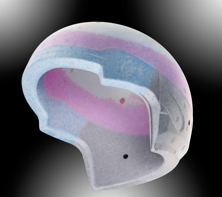 Так, внутренняя и внешняя части шлема Arai Regent-X изготовлены из высокопрочных волокон, хаотично нанесённых на колодку. Этот этап у Arai называется "птичьим гнездом" из-за внешнего вида заготовки перед нанесением эпоксидной смолы. Волокна, расположенные в композите в случайном порядке, делают его в смеси со смолой чрезвычайно прочным. Между этими двумя слоями ткань перемежается со вспененными материалами для перенаправления энергии столкновения вдоль корпуса шлема, а не внутрь, распределяя силы ударов по большой площади. Самое уязвимое место любого шлема - это прорезь, но в рамках своей программы Formula One Arai создала собственную супер-ткань, которую использует для армирования края прорези. Такая технология называется Peripherally Belted Complex Laminate Construction, что можно перевести примерно как "Сложная слоистая конструкция, армированная ремнём". Для единообразия формы скорлупы, горловина и прорезь выполняются при помощи лазера на роботизированном станке. Одно из нововведений, использованных Arai в шлеме Regent-X - это применение новой, более дешёвой смолы для снижения стоимости, но без увеличения веса или ухудшения защиты. В результате получился шлем, сертифицированный по DOT и Snell M2020, но что даже важнее, подходящий под внутренние жёсткие стандарты Arai.