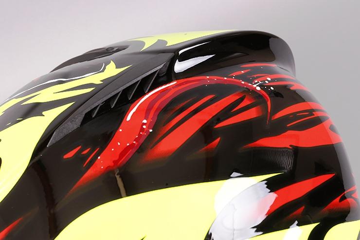 Airoh Aviator 2.2 выпускается с двумя размерами скорлупы - одна для размеров XS, S и M, а вторая - для L и XL, благодаря чему шлемы малых размеров не выглядит слишком большими. Скорлупа этого шлема сделана из карбон-кевларового композита, а яркая графика на её внешней стороне покрыта толстым слоем прозрачного лака.