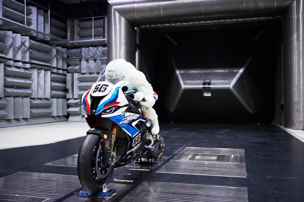 Пока гонки были невозможны, разработка S 1000 RR для World Superbike продолжалась, особенно в области аэродинамики. Продираться сквозь ветер с максимальной эффективностью - крайне важно, когда речь идёт о гонках высочайшего уровня, и хотя поместить BMW S 1000 RR в аэродинамическую трубу несложно, продувать в ней один мотоцикл, без райдера - практически бессмысленно. Но что делать, если райдеры сидят по домам в своих странах и самоизолируются, не имея возможности приехать в Мюнхен из-за ограничений?