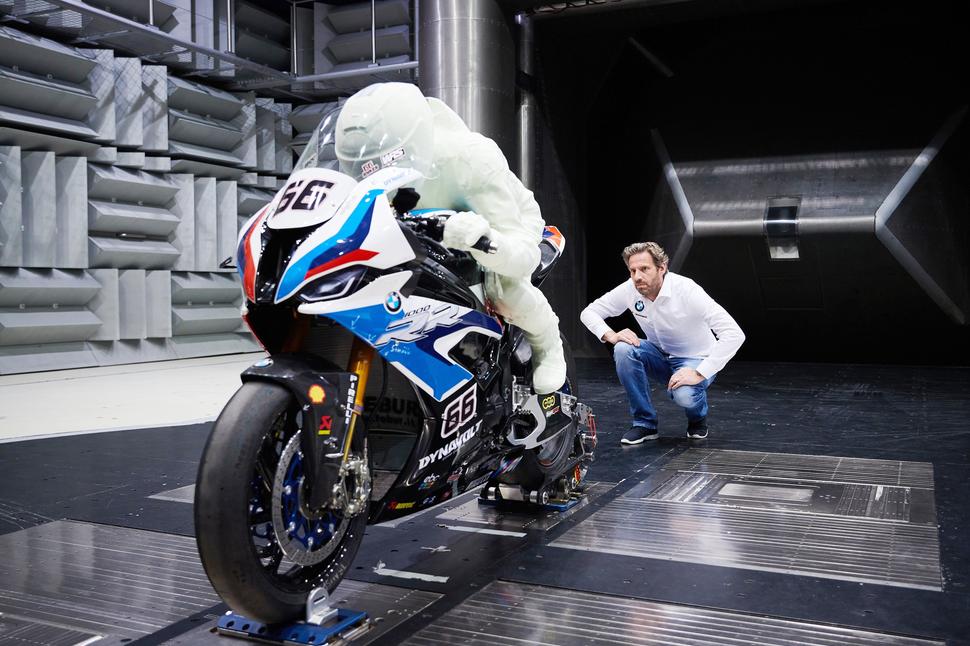 Пластиковый Лаверти уже был использован более пятидесяти раз, но он совершенно невозмутим и спокойно высиживает любые эксперименты в седле BMW S1000RR. Аэродинамическая труба BMW оснащена 2600-сильным электромотором, способным имитировать скорости до 260 км/ч.