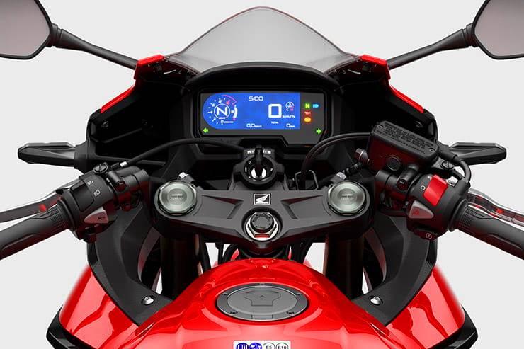 Аналогично и с Honda CBR500R и её новыми компонентами: вес остался равен 192кг, и при этом 50,7% его приходится на переднее пятно контакта, а 49,3% - на заднее (раньше было 50,1%/49,9%).
