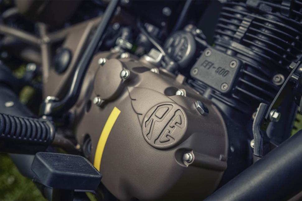 В плане устройства, однако, это всё тот же мотоцикл Royal Enfield Classic 500 с одноцилиндровым, объёмом 499 куб. см, четырёхтактным, с двумя свечами, воздушного охлаждения двигателем, выдающим серьёзные 28 лошадиных сил и 42 Н*м крутящего момента. Комфорт езды обусловлен 35миллиметровой телескопической вилкой с ходом 130 мм, и двумя задними газовыми амортизаторами с пятью вариантами преднатяга пружины и 80 миллиметрами хода.