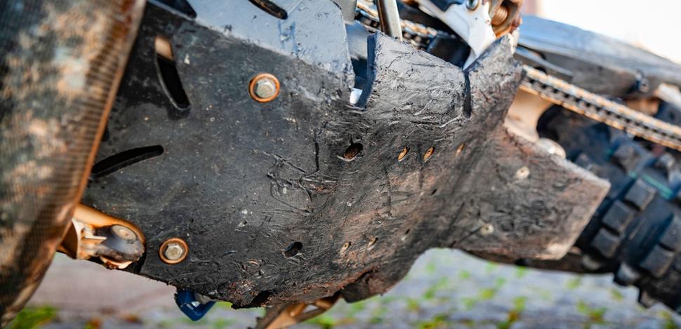 Я считаю, что защиты много не бывает, особенно если есть хоть небольшая вероятность езды по препятствиям. Так что я сэкономил кучу денег на эвакуацию и ремонт, поставив защитные элементы на мотоцикл. Это защита картера, ловушка цепи, защита заднего диска, лопухи и защита выхлопа.