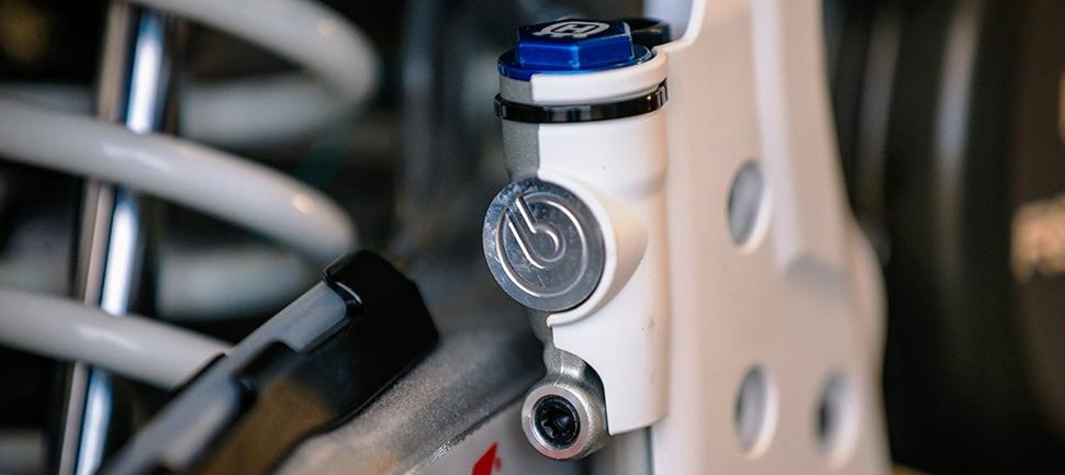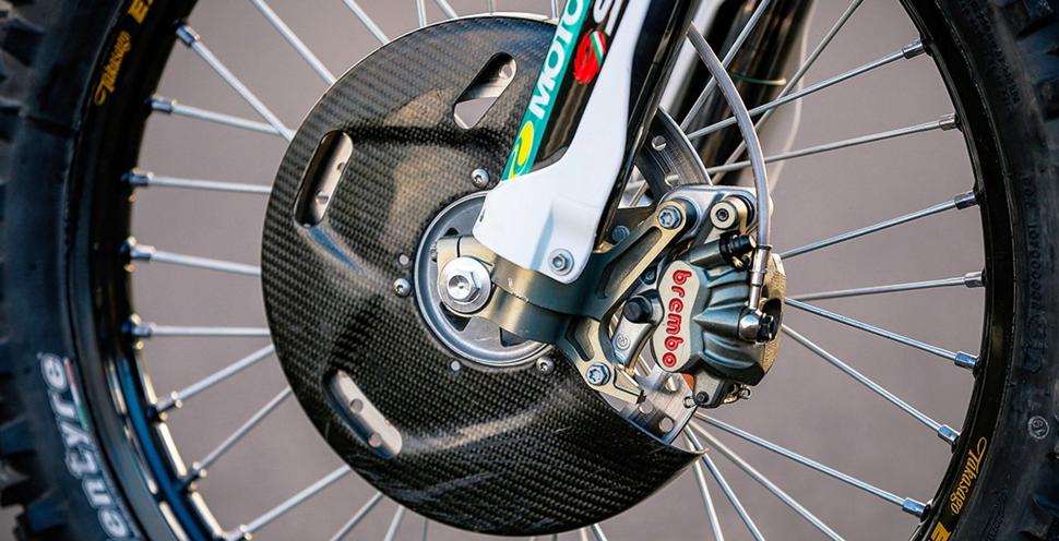 Спереди Husqvarna TE 300i стоит суппорт Brembo Factory SXS, а сзади - стандартный суппорт Husqvarna, потому что суппорт Brembo для Грэма тормозит слишком мощно. Тормозные диски - те, что парни использовали на соревнованиях World Enduro в прошлом году. Рабочий цилиндр сцепления - заводская версия без смотрового окошка.
