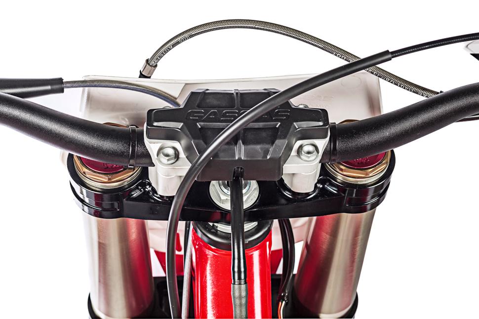 Переключение на карту Rain ощущается мгновенно: не только увеличивается сцепление заднего колеса с поверхностью, также становится легче контролировать подачу газа. В результате райдер эндуро мотоцикла может действовать более агрессивно, не опасаясь, что это приведет к пробуксовке. Двигатель имеет некоторую вибрацию, характерную для двухтактных моторов. Напомним, что компания GasGas использовала двухтактные двигатели с балансирным валом до конца 1990-х годов. Но они отказались от этого компонента, снижающего вибрацию, чтобы сократить общий вес.