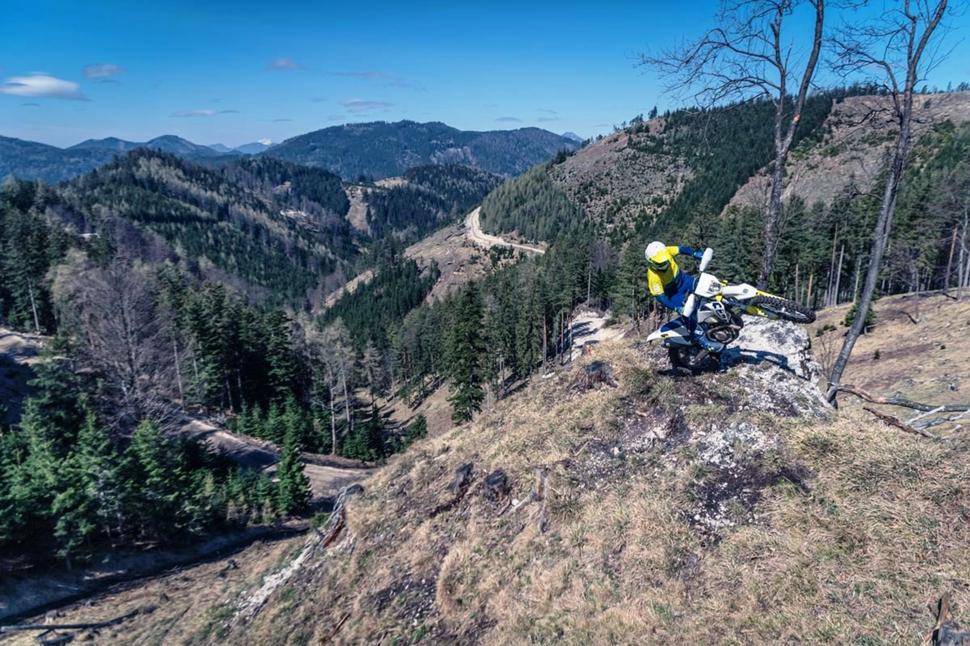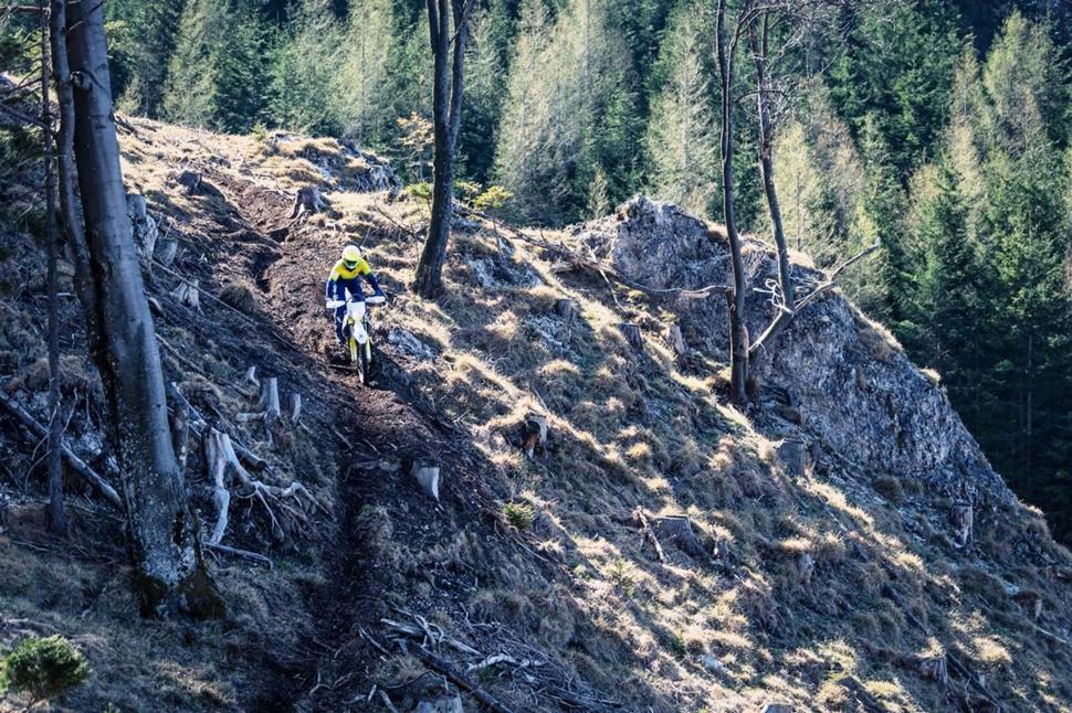 По первому впечатлению подвески показались мне значительно мягче, чем на KTM XCF-W 350, но я знал, что их можно подрегулировать. Подвески Husqvarna FE 350 отлично отрабатывают на медленных, каменистых, узких и сложных участках. Однако, в какой-то момент они оказываются слишком мягкими. И даже регулировка преднатяга обеих подвесок не исправляет того, что на них невозможно выставить достаточно жёсткое сглаживание, чтобы колёса оставались на земле на высоких скоростях и больших ударах. Ко всему прочему, двигателя порой недостаточно, чтобы быстро выскочить из ситуации, где подвески подвергаются перегрузкам.