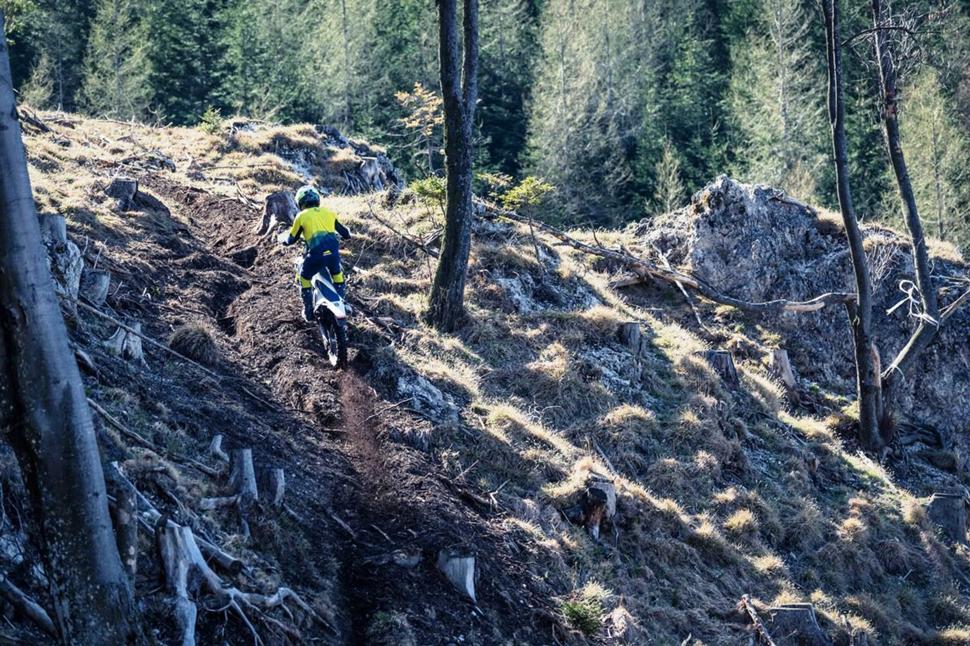 По моим предположениям, Husqvarna FE 350 с вилкой WP Xplor с внешним регулятором преднатяга и амортизатором WP Xact на рычажной подвеске запросто заткнёт за пояс XCF-W 350. Двигатели обоих мотоциклов по большей части идентичны - и оба задушены под американские эконормы (которые, увы, приходится учитывать даже европейским производителям чисто внедорожной техники). После небольшой фотосессии, пообвыкнувшись на мотоцикле, я прокатился на FE 350 по нескольким местам, чтобы выяснить, как он на самом деле едет.
