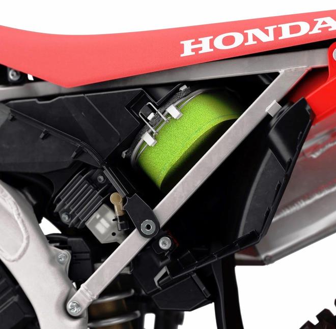 Надёжность всегда была одним из ключевых факторов конструкции Honda CRF450, и пятиструйная масляная форсунка на пару со сдвоенным маслонасосом обеспечивают постоянность смазки поршня.