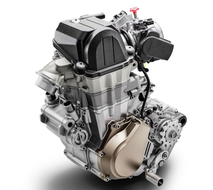 Кросс-кантрийный флагман Husqvarna имеет диаметр поршня в 95 мм, что на 2 мм меньше, чем у некоторых 450-кубовых соперников этой модели. Благодаря этому лёгкий 320-граммовый поршень уменьшает подвижную массу, а рабочий объём в 450 кубов достигнут благодаря увеличению хода - 63,4 мм, что примерно на 2,5 мм больше, чем у соперников.