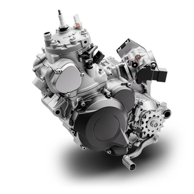 Двухтактный инжекторный двигатель Husqvarna TX300i имеет принцип "впрыска в трансферное окно". Больше не нужно менять жиклёры или иглы, потому что карбюратора больше нет. А похожий на карбюратор узел - это на самом деле дроссельная заслонка Dell’Orto на 39 мм. Она не впрыскивает топливо, а лишь регулирует подачу воздуха и служит местом, куда впрыскивает масло система автосмазки.