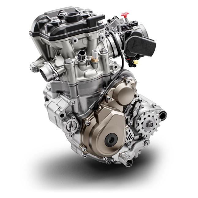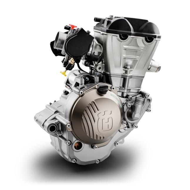 Двигатель у Husqvarna FX 350 практически тот же, что и у FC 350. Всё тот же EMS (ЭБУ) Keihin и 44-я дроссельная заслонка. ЭБУ оснащается несколькими топливными картами, выбираемыми переключателем на руле, а также трекшн-контролем и лаунч-контролем. Глушитель лишён душилки-искрогасителя - эта же модель ставится на четырёхтактные кроссачи Husqvana - с проточным резонатором для оптимальной эффективности.