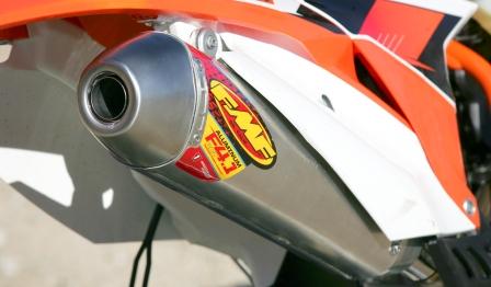В Калифорнии штраф на езду по дорогам общего пользования без искрогасителя составляет $1000. Поскольку подобные обстоятельства весьма нежелательны, оба мотоцикла мы оснастили глушителями FMF. На KTM был установлен Aluminum Factory 4.1 RCT ($374), а на модель Yamaha - Powercore 4 Hex ($329). Один день мы тестировали байки с заводскими выхлопными системами, в оставшееся время сравнивали их показатели после установки дополнительных искрогасителей от FMF.