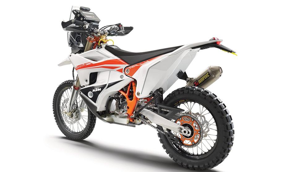 KTM 450 Rally Replica - это модель ограниченной серии, которую выбирают многие и многие раллийщики по всему шару. Rally Replica максимально приближена к гоночным снарядам заводской команды KTM, и создана для того, чтобы удовлетворить самые взыскательные запросы профессиональных гонщиков. В мире, где слова "гоночная реплика" часто становятся броской наклейкой для продажи пустышек, KTM 450 Rally Replica остаётся эталоном настоящего мелкосерийного аппарата для серьёзных гонщиков.