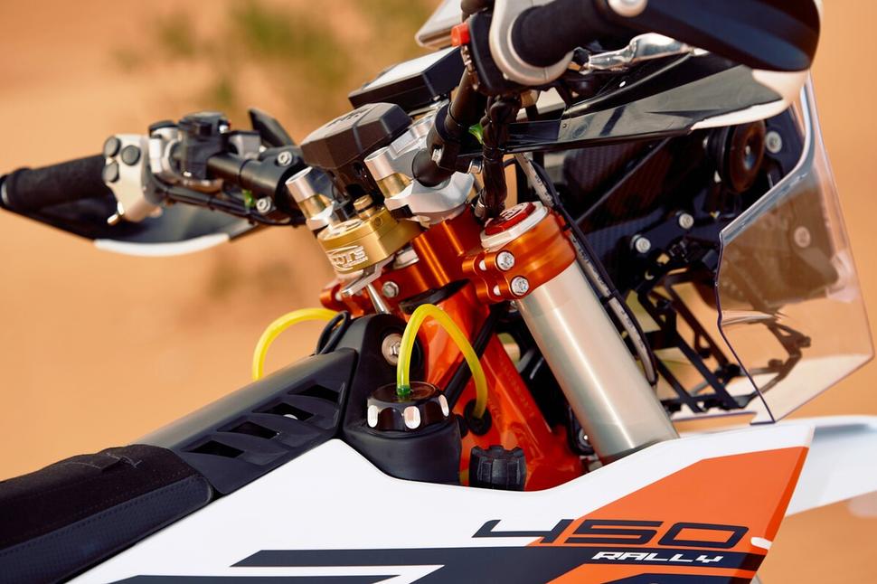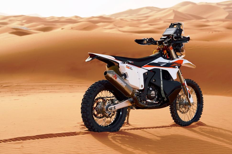 Список серийных раллийных мотоциклов всё растёт и ширится, но на данный момент KTM 450 Rally Replica встречается в паддоках наиболее часто. Эта модель разработана при участии KTM-овских чемпионов ралли Дакар, таких как Марк Кома, Маттиас Уокнер, Тоби Прайс, Кевин Бенавидес и, конечно же, Дэниэл Сандерс. И лучшим доказательством того, что эта оранжевая модель действительно "готова к гонке", является недавняя победа Эмануэля Дьенеша в Классе Original by Motul на Дакаре-25, равно как и полностью KTM-овский подиум.