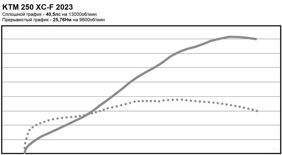 Судя по весам, KTM 250 XC-F 2023 года стал почти на 3кг тяжелее, чем предыдущая модель 2019-2022 годов. Что же касается характеристик двигателя, то на диностенде 250-кубовый четырёхтактный кросс-кантри KTM 250 XC-F произвёл пиковые 40,5лс на 13000об/мин и 25,76Нм на 9800об/мин. Для сравнения, кроссовый 250 SX-F 2022 года на том же диностенде показал 39,8лс на 13400об/мин и 25,9Нм на 8700об/мин.