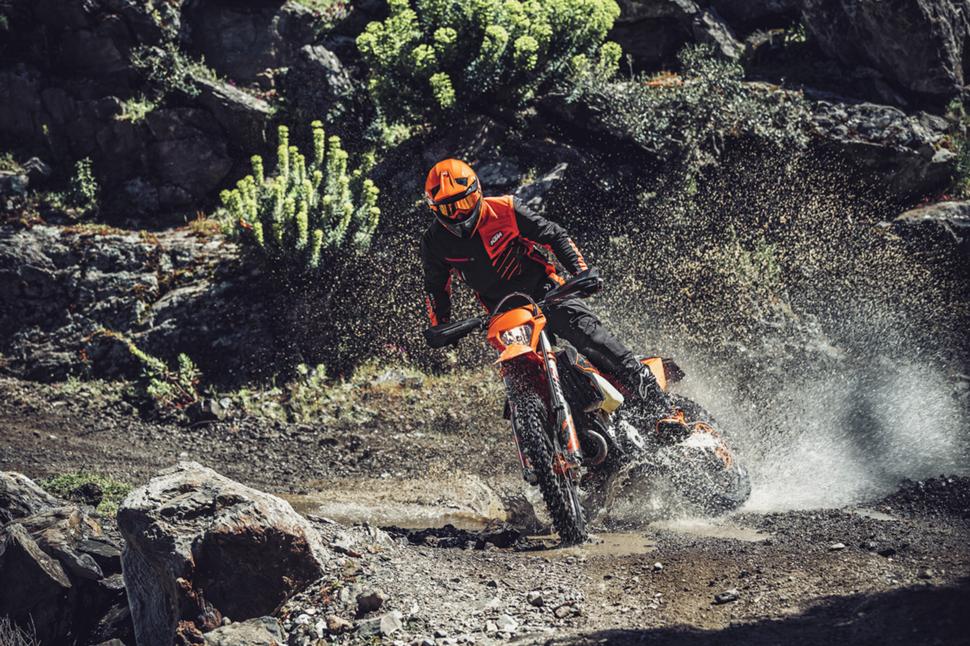 Тут скажу просто: KTM 250 EXC TPI - это та же 300 TPI с чуть меньшей тягой. Звучит очевидно, но это и в самом деле два очень похожих мотоцикла, они ощущаются одинаково, имеют одинаковый отклик на ручку газа и одинаковый взрывной характер двигателей. И как и 300-ка, 250-ка удивила меня тем, насколько быстро она реагирует на газ, но здесь это было уже привычное и приятное чувство.