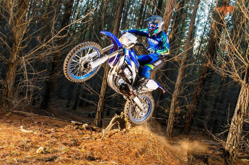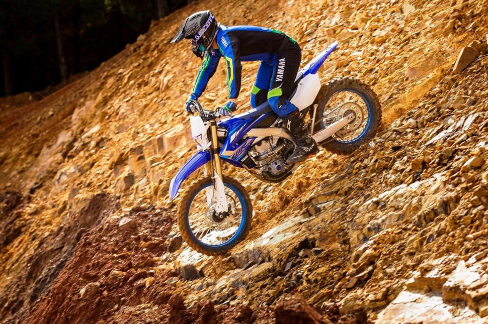Первое впечатление: у Yamaha WR450F лучший мотор из всей группы. Она во многом напоминает кроссовую модель, бодро реагирует на открытие газа и шикарно ускоряется. Мотор весёлый, шустрый и делает езду восхитительной. Звук из воздушного фильтра довольно громкий, и к нему некоторое время приходится привыкать. Он не громче, чем у кроссовой версии, но поскольку здесь тише глушитель, звук впуска слышно более отчётливо. Подвеска Yamaha WR450F - идеальная комбинация мягкости в начале хода для мелких неровностей и прогрессивного увеличения жёсткости при ускорении или увеличении размера препятствий. Продирался ли я через большие камни или ускорялся на выходе из бугристого поворота, я всегда чувствовал, что вилка и амортизатор готовы к этому. Мотоцикл отлично чувствуется. Yamaha WR450F просторный, но не массивный, легко поворачивает с райдером хоть в стойке, хоть в седле, а мотор отлично тянет, что очень легко оценить на первой передаче где-нибудь в лесу или на тропке.