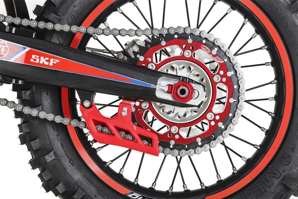 Я раньше никогда не ездил на Beta 430 RR Race Edition, но с точки зрения дизайна она десять из десяти. Это единственный мотоцикл с объёмом меньше 450 кубов, и я не знал, чего ждать в плане мощности. В начале заезда на затычном участке мотоцикл вёл себя превосходно, он очень хорошо цеплялся за грунт и при этом отлично управлялся, с лёгкостью справляясь с кочками и камнями. Я понял, что в стойке на Beta 430 RR Race Edition удобнее всего, и мне он очень нравился. На более быстром участке я ехал на нём так, как на мощных мотоциклах, и он казался чуть медленным, но потом я стал переключаться почаще и доверять двигателю, и дело пошло лучше. Подвески KYB мягковаты для быстрых и больших неровностей, но при более медленной езде они превосходны. Тормоза Brembo - огромное преимущество, они отлично останавливают мотоцикл и прекрасно модулируются, делая входы в повороты более контролируемыми. Единственный, но огромный недочёт состоял в том, что Beta в какой-то момент перегрелась, а без вентилятора охлаждения и с плохонькой крышкой радиатора это может стать большой проблемой.