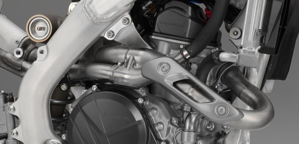 Мотоцикл Honda CRF450RX получил практически те же изменения, которые приобрел в 2019 модельном ряду CRF450R. Изменения коснулись обновленной головки блока цилиндра, выпускной трубы увеличенного диаметра, механизма сцепления и прижимной пластины в частности, фильтр бокса, новая форсунка смазки поршня, новый датчик переключения передач, а также новые опции режима работы двигателя. Также общая длина выхлопной системы (от выпускного окна мотора до конца глушителя) увеличена на 98мм с правой стороны и на 187мм с левой.