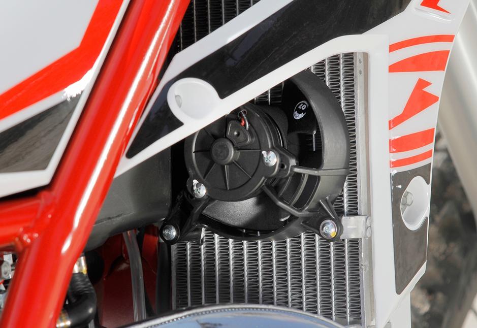 Вам больше не нужно переживать о смешении масла и бензина в двухтактном движке, Beta Xtrainer 300 оснащён электронным масляным инжектором, чётко контролирующим объём подачи масла в двигатель, соответственно числу оборотов в минуту. Масляный резервуар расположен под сидением, что обеспечивает лёгкий доступ при нажатии на кнопку подъёма сидения. Цифровой одометр оснащён двумя сигнальными лампочками: одна обозначает низкий уровень масла; другая предупреждает о неполадках в системе, указывая на остановку двигателя. Электростартер обеспечивает быстрое зажигание XTrainer, но кикстартер не входит в заводскую комплектацию модели, он идёт в отдельном пакете. Терморегулируемый электрический вентилятор препятствует перегреванию двигателя, даже на самой низкой скорости.