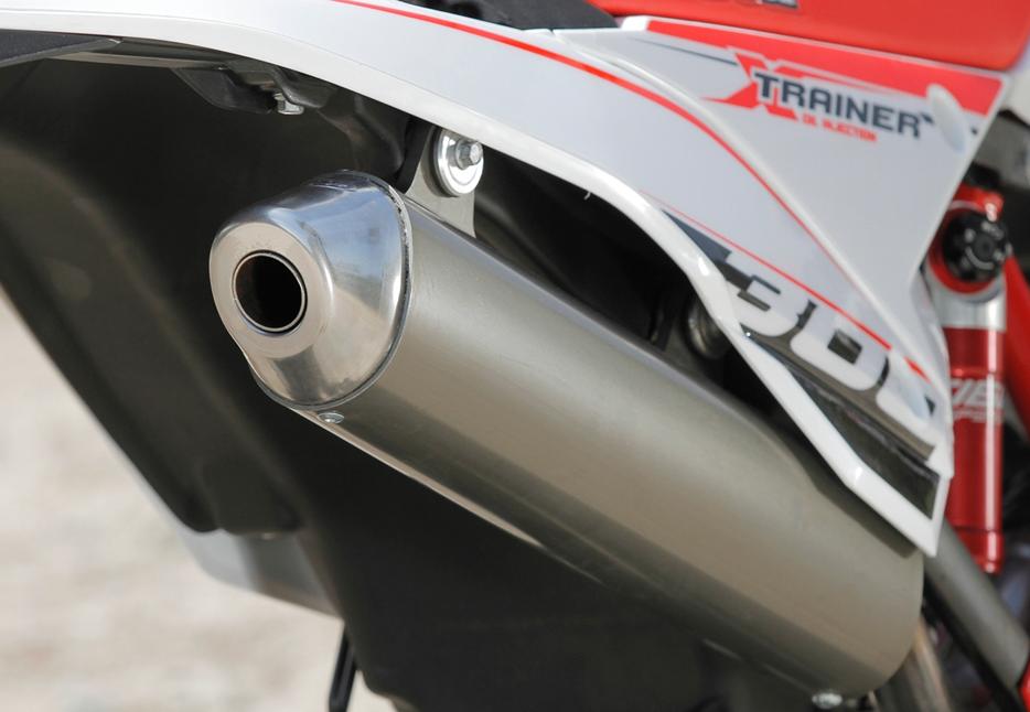 Кто-то спросит, почему Beta на уменьшили рабочий объём двигателя, как это сделали KTM 200? Ответ прост: 200-кубовый двухтактный движок не сможет эффективно снизить тягу двигателя при том же крутящем моменте, что 300 XTrainer. Что бы вы ни делали, он не выдаст такое же плавное увеличение мощности на всём диапазоне оборотов, как новый Beta. 200-кубовый двигатель обладает хорошей производительностью, но поддержание его на оптимальных оборотах требует более высокого уровня водительских навыков. К тому же, было проще доработать уже проверенную модель движка, чем создавать новую с нуля.
