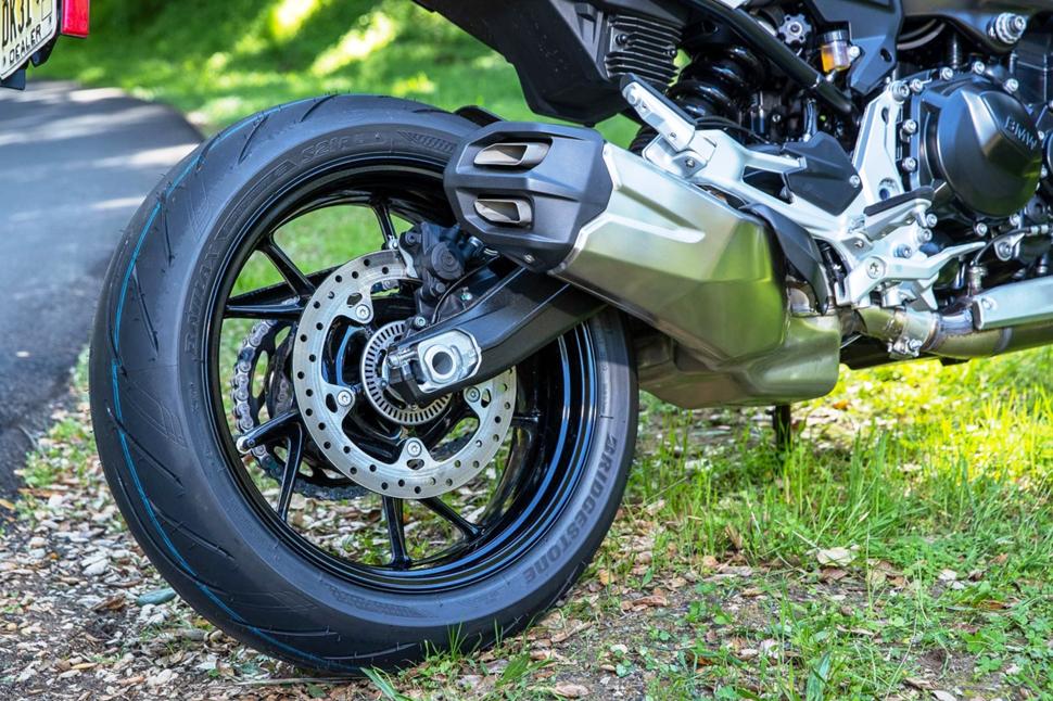 Управление лёгкое и интуитивное. BMW F 900 R - это не спортбайк в каноническом смысле. Он не рулится силой мысли, зато он управляется чётко и устойчиво. 29,5 градусов выноса рулевой колонки - мне до сих пор не верится - и длинная колёсная база в 151 сантиметр придают F 900 R невероятную устойчивость и в хорошем смысле цепкость. Удивительно, почему он при этом не кажется громоздким, особенно при снаряжённой массе 211 кг. F 900 R просто едет туда, куда ты хочешь, не возражая и не своевольничая. Агрессивная резина Bridgestone Battlax Hypersport S21 - отличный выбор для этой модели, и они, вполне возможно, вносят весомый вклад в прекрасную управляемость мотоцикла. Без сомнения, BMW F 900 R напомнил всем нам, что для того, чтобы оценить и понять мотоцикл, нужно на нём поездить, а читать характеристики нужно уже потом.