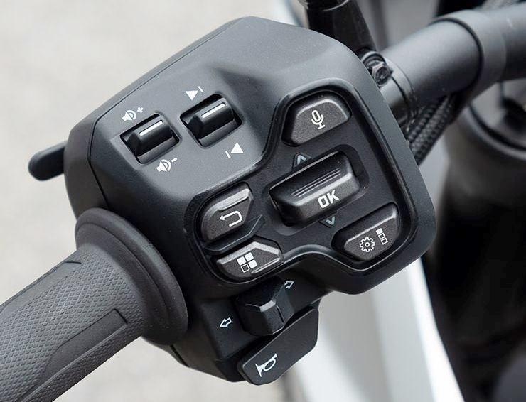 Из соображений безопасности дисплей не поддерживает режим тачскрина на ходу, а управляется при помощи кнопок на довольно богатом левом пульте. Если в шлеме райдера установлен интерком, то с того же пульта можно управлять громкостью, переключать композиции и активировать голосового помощника. Can-Am планируют выпустить собственный шлем с интеркомом под названием Vibe, отдельно коммуникатор тоже будет доступен. Прошивка ЭБУ и приборной панели может обновляться по воздуху через вай-фай и приложение на смартфоне.