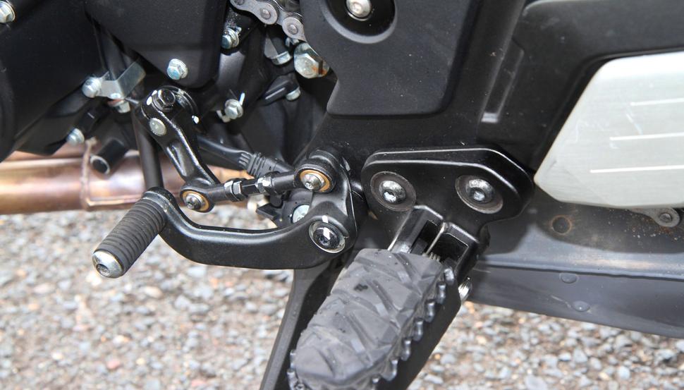 Подвески у обеих версий 700CL-X одинаковые, от KYB. Это перевёрнутая 41-я вилка с полным набором регулировок и моноамортизатор с настройкой отбоя и преднатяга. Ходы на обоих концах по 150мм. Высота Sport по седлу равна 795мм (на 5мм ниже, чем Heritage), и даже несмотря на клипоны посадка на нём не слишком агрессивная.