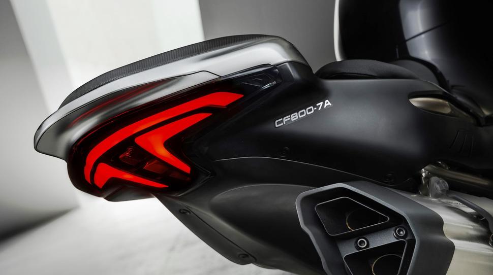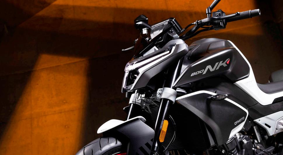 Стреловидный диодный головной свет, острые линии, короткий хвост и впечатляющий список штатного оборудования - таков CFMoto 800NK, привнёсший свежую струю в высококонкурентный рынок дорожных мотоциклов. Он оснащён резвым 799-кубовым двухцилиндровым рядным двигателем с двумя верхними распредвалами, конструкция которого основана на проверенном и любимом KTM-овском моторе. В версии CFMoto двигатель выдаёт 100,8лс на 9000об/мин и 81Нм на 8000об/мин.