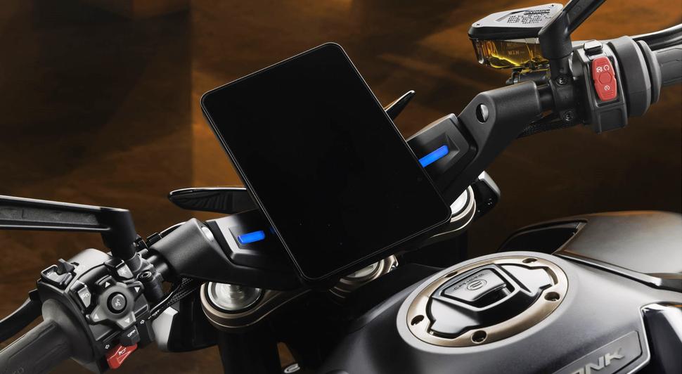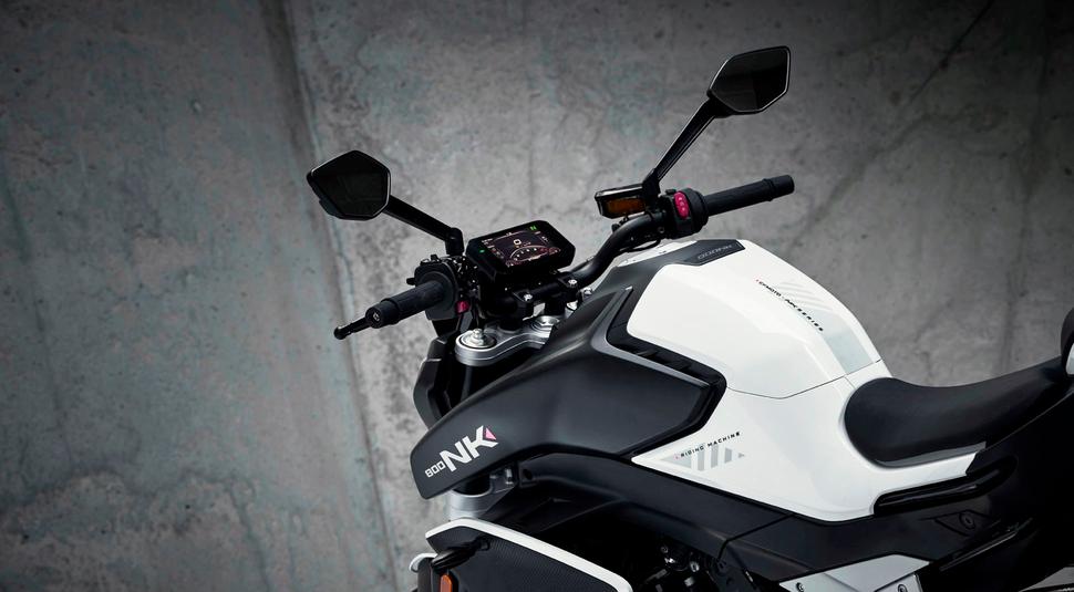 Фирменная система T-Box обеспечивает подключение смартфона по Bluetooth, и при помощи приложения CFMoto Ride App райдеру доступен целый ряд полезных функций, включая навигацию, историю перемещений и статистику, а также удалённый доступ к статусу мотоцикла (в том числе к уровню топлива), возможность обновлять прошивку ЭБУ по воздуху, новые функции безопасности, включая датчики движения, местоположение мотоцикла на карте и даже геофенсинг. 800NK Sport (базовая модель) оснащена 5-дюймовым изогнутым TFT-дисплеем с удобным интерфейсом, на котором отображается множество параметров, включая индикатор переключения передач. Модель 800NK Advanced оснащена 8-дюймовым TFT-дисплеем с полностью ламинированным сенсорным экраном и автомобильным контроллером, обеспечивающим чёткие визуальные эффекты и плавную работу, как на планшете. Этот шикарный дисплей может полностью управляться с помощью голосовых команд, внешних кнопок или сенсорного интерфейса, реагирующего в том числе на руки в перчатках. Кроме того, новый сенсорный дисплей поддерживает Apple CarPlay, интеграцию с мультимедиа и подключение по Bluetooth.