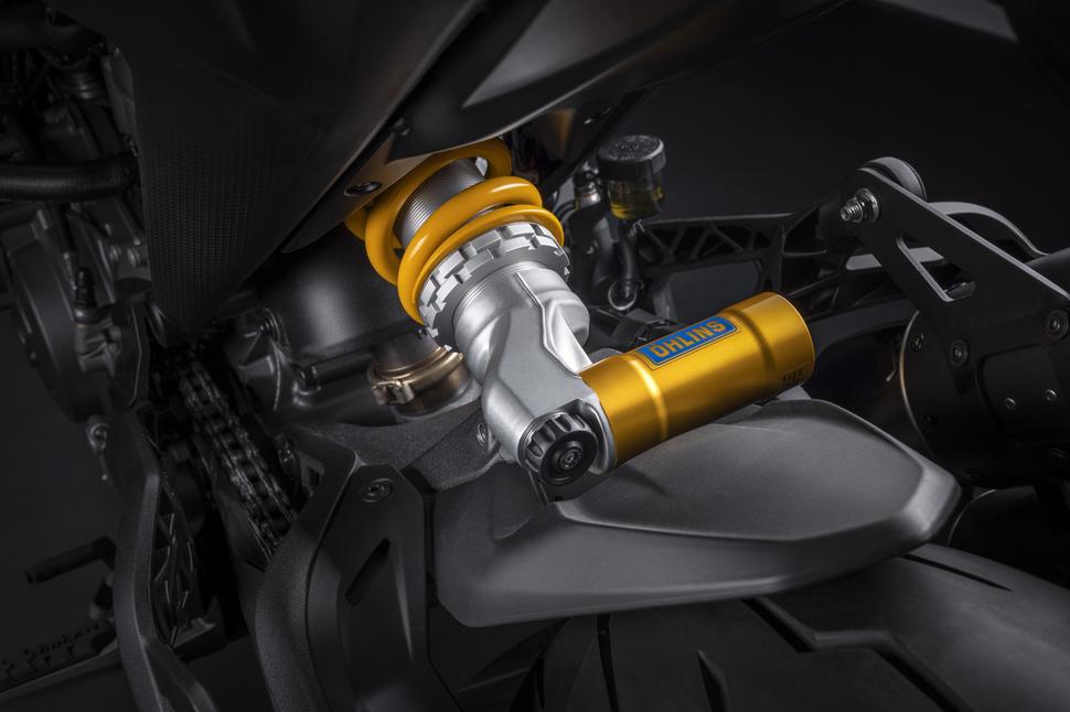 Новый Ducati Monster SP оборудован 43-миллиметровой вилкой Ohlins и моноамортизатором того же бренда, обе подвески имеют полный набор регулировок и по сравнению с базовой версией Monster повышают информативность шасси и углы наклона, достигаемые при спортивной езде, а также возможность сузить траекторию поворота. Кроме того, вилка поспособствовала облегчению Monster SP благодаря тому, что она на 0,6кг легче, чем вилка базовой версии Monster. Точность спортивной езды и уверенное прохождение поворотов по неровному асфальту дополнительно подкреплены наличием рулевого демпфера Sachs.