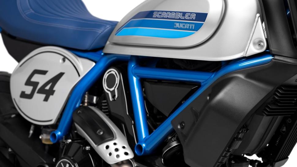 Хоть некоторые и предпочтут «британцев», но этот мотоцикл выполнен в стиле легендарного Ducati 125GP Desmo, а номерной знак «54» принадлежал знаменитому Бруно Спиаджиари (Bruno Spiaggiari), бывшему гонщику Гран-при, а затем менеджеру команды Ducati Desmo team. Так что с полной уверенностью можно сказать, что он стоит своих денег.