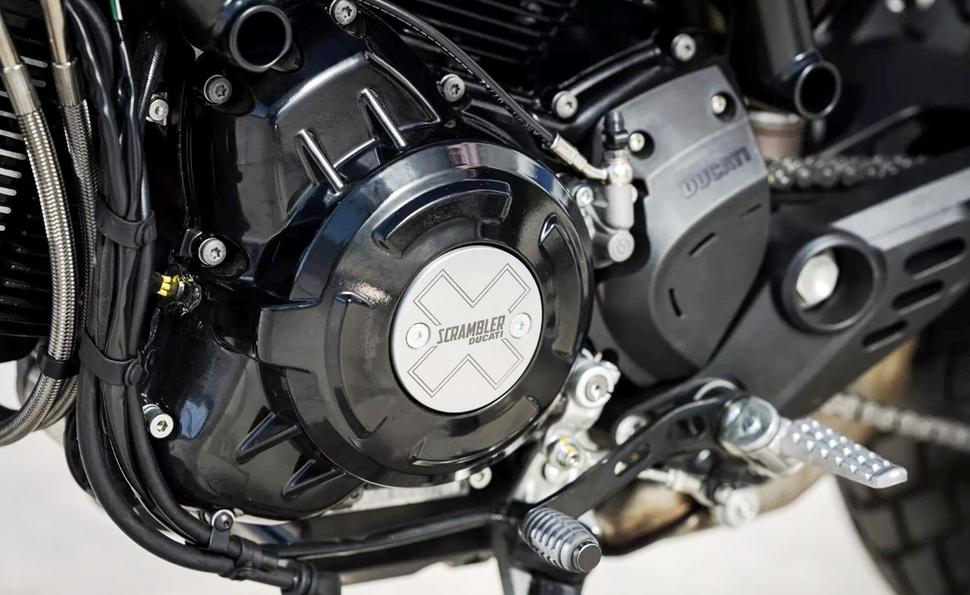 Благодаря масштабному обновлению Scrambler Icon 2023 года на 4кг легче, чем прошлое поколение, и больше двух кило из них сэкономлено на двигателе. Более лёгкое сцепление с восемью дисками (у прошлого их было десять), новый копирный вал и более тонкие крышки двигателя частично объясняют снижение веса, но ещё Ducati прошлись по всему мотоциклу с частым гребнем и снизили тут и там по нескольку десятков граммов - от меньшего аккумулятора до более лёгких колёс.