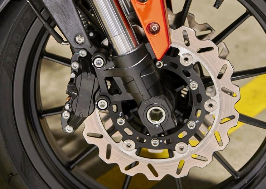 Тормоза Harley Davidson X350-го представлены двумя дисками с лепестковым краем спереди и аксиальными двухпоршневыми суппортами на них. ABS входит в базовую комплектацию и работает предсказуемо и чётко. После нескольких дрэг-стартов тормоза чуть снизили хватку, но не потеряли ни информативности, ни реакции, несмотря на жару.