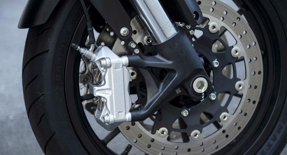 Задний тормоз на обеих моделях дисковый с однопоршневым суппортом, работает вполне адекватно и в начале торможения, и для стабилизации мотоцикла на малом ходу. Симпатичные 12-лучевые алюминиевые колёса обуты в простую, но неплохую резину.