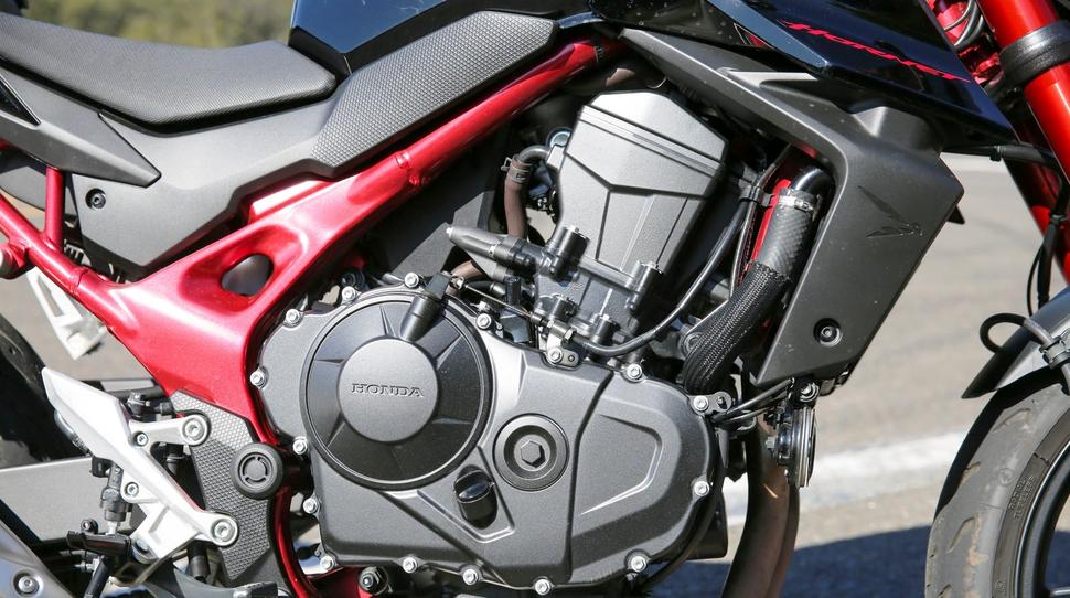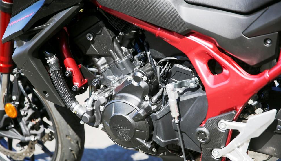 Сердцем нового Hornet стал 755-кубовый двухцилиндровый рядник, старший брат-качок двигателя CBR500R. Он выдаёт свыше 90лс, и в этом шасси он просто великолепен. Мотор CB750 чрезвычайно отзывчив и при этом имеет отличный верховой характер, как мало какой из соперников.