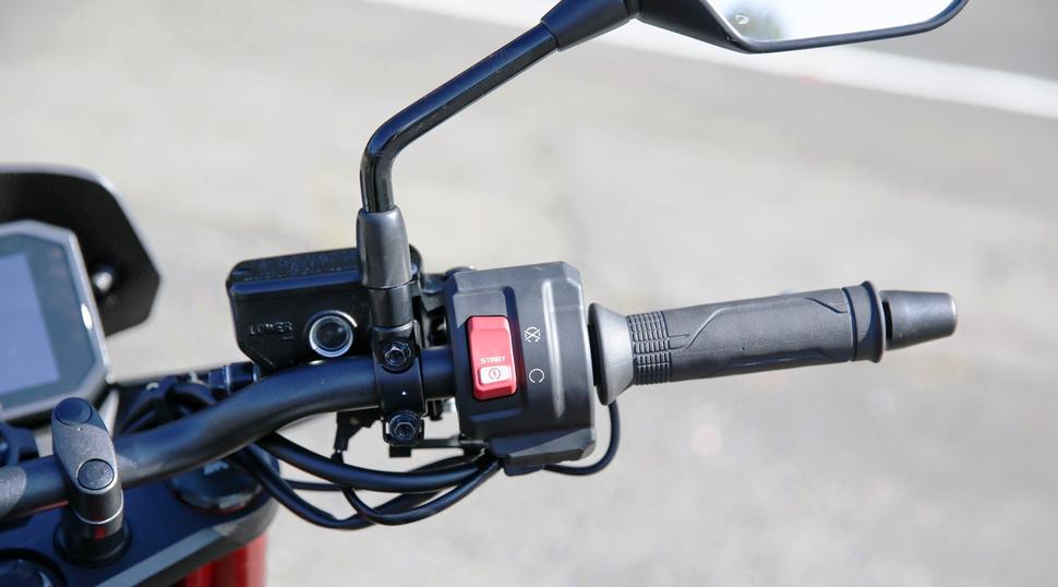 Пик тяги составляет целых 75Нм, и его тяговитая характеристика - просто сказка. Даже в стандартных режимах он откликается на газ чуть агрессивно, но это - важная часть общего очарования этого мотоцикла. Он резкий и тяговитый, поэтому встаёт на заднее с газа почти чересчур легко.