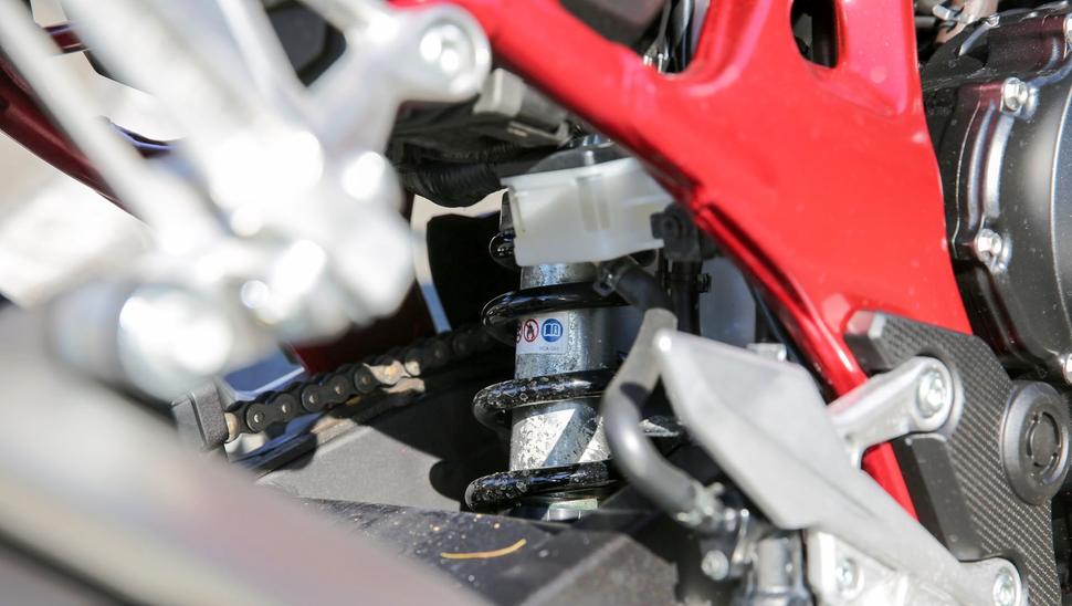 Спереди стоит 41-миллиметровая раздельная вилка Showa Big Piston Separate Function. Она не регулируется, но это потому, что она с завода отлично работает. Сзади - рычажная подвеска ProLink с амортизатором Showa и пятью ступенями преднатяга пружины, так что если вы тяжёлый, то тут есть варианты. Высота по седлу - 795мм, вполне удобные и невысоким райдерам, а вертикальная посадка весьма комфортна. Конечно, самым высоким в долгих поездках покажется тесновато… но вы, двухметровые, и сами всё понимаете.