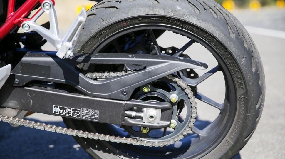 Шестиступенчатая коробка - ровно такая, какую ожидаешь от Honda, уверенная и плавная. Опциональный квикшифтер добавляет веселья, но на низких оборотах срабатывает неуверенно. Этот мотоцикл заточен под хулиганов, и на низах артачится.