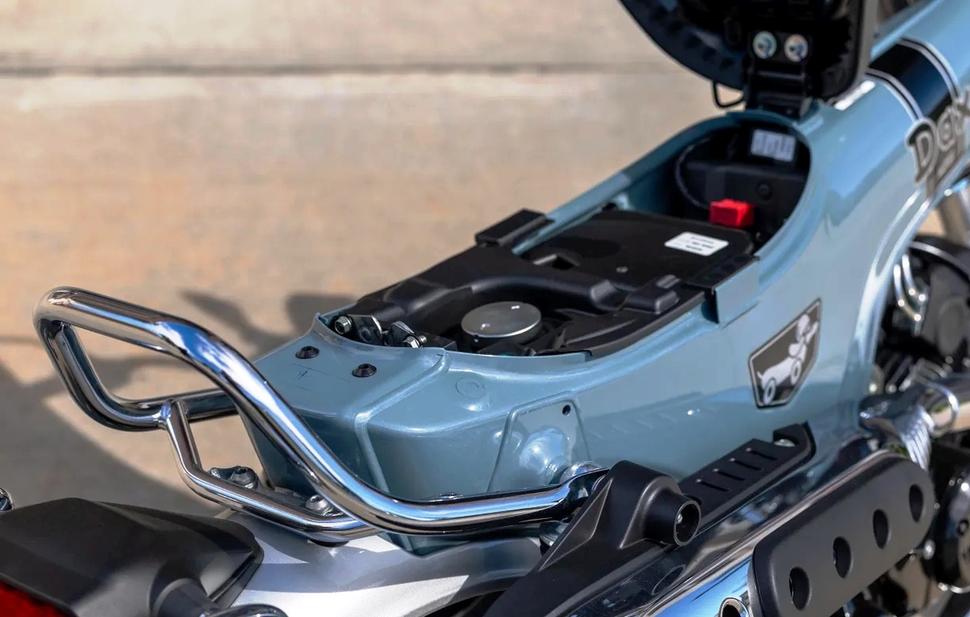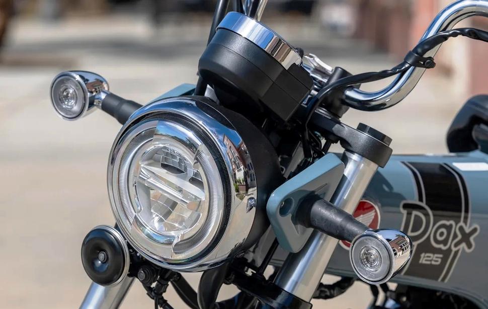По части дизайна Honda Dax 125 2025, безусловно, опирается на прошлое, но в самых важных аспектах он вполне современный. Инжекторный двигатель запускается с нажатия кнопки, вилка - перевёрнутая, приборная панель жидкокристаллическая, а тормоза на обоих колёсах дисковые, да ещё с ABS (спереди).