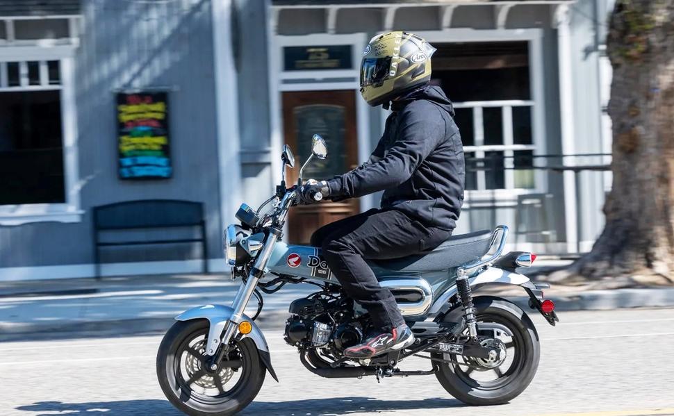 В наше время существует огромное число утилитарного двухколёсного транспорта. В основном электрического, и по большей части абсолютно бездушного. С Honda Dax дела иначе: да, это современная модель, но одновременно это мотоцикл с историей. И он не бездушный, он определённо добрый, от характерной хребтовой рамы до длинного седла и 12-х колёс, Dax абсолютно удобен, покладист и приятен в общении. Несмотря на довольно высокое (77,7см) седло, Dax узкий и лёгкий, весит он всего 107кг, так что всякие опасения насчёт управляемости моментально тают, стоит только перекинуть ногу через седло.