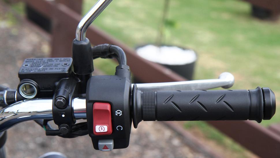 Положение тела естественное и комфортное, широкий хромированный руль имеет удобный изгиб и придаёт ретро-стиль, а форма бензобака обеспечивает удобный охват коленями. В приборную панель постарались заложить удобный функционал, но очень уж хотели подчеркнуть её ретро-простоту, поэтому маленький ЖК-шный экранчик на половине круглого спидометра читается плохо, особенно под некоторыми углами освещения. Спидометр как таковой - вполне хорош. Штатный выхлоп на удивление приятно звучит, солидно, но не навязчиво.