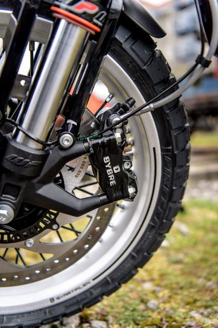 Чтобы выглядеть как городской эндуро, Husqvarna Svartpilen действительно имеет некоторые тематические штрихи- спицованные колеса, шины с шашкой Pirelli.