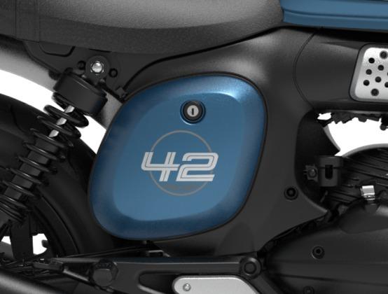 По словам Jawa, 42 FJ - это самая спортивная модель в их линейке, и это вполне очевидный факт. Подножки мотоцикла имеют среднее расположение, а не вынесены вперёд, как на остальных современных моделях Jawa. Построена она на той же раме, что и обычная Jawa 42, но имеет другой подрамник, придающий ей более спортивный, своего рода кафе-рейсерный вид.